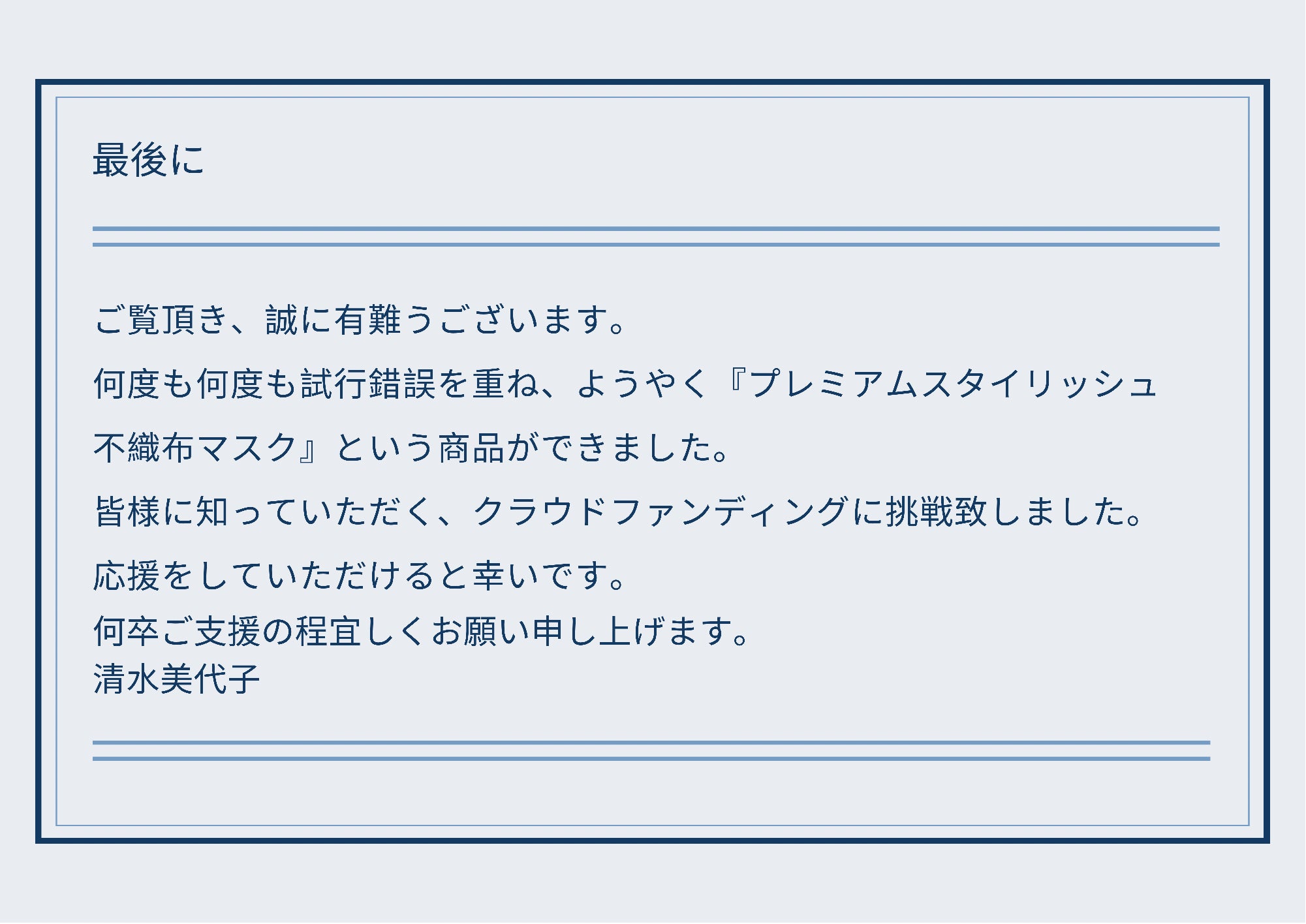 対価以外に必要な費用:プロジェクトページ、リターンに記載のとおり申込期限:当ページ記載のプロジェクト終了期限どおり