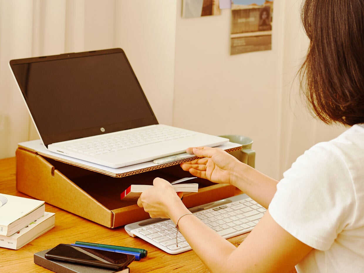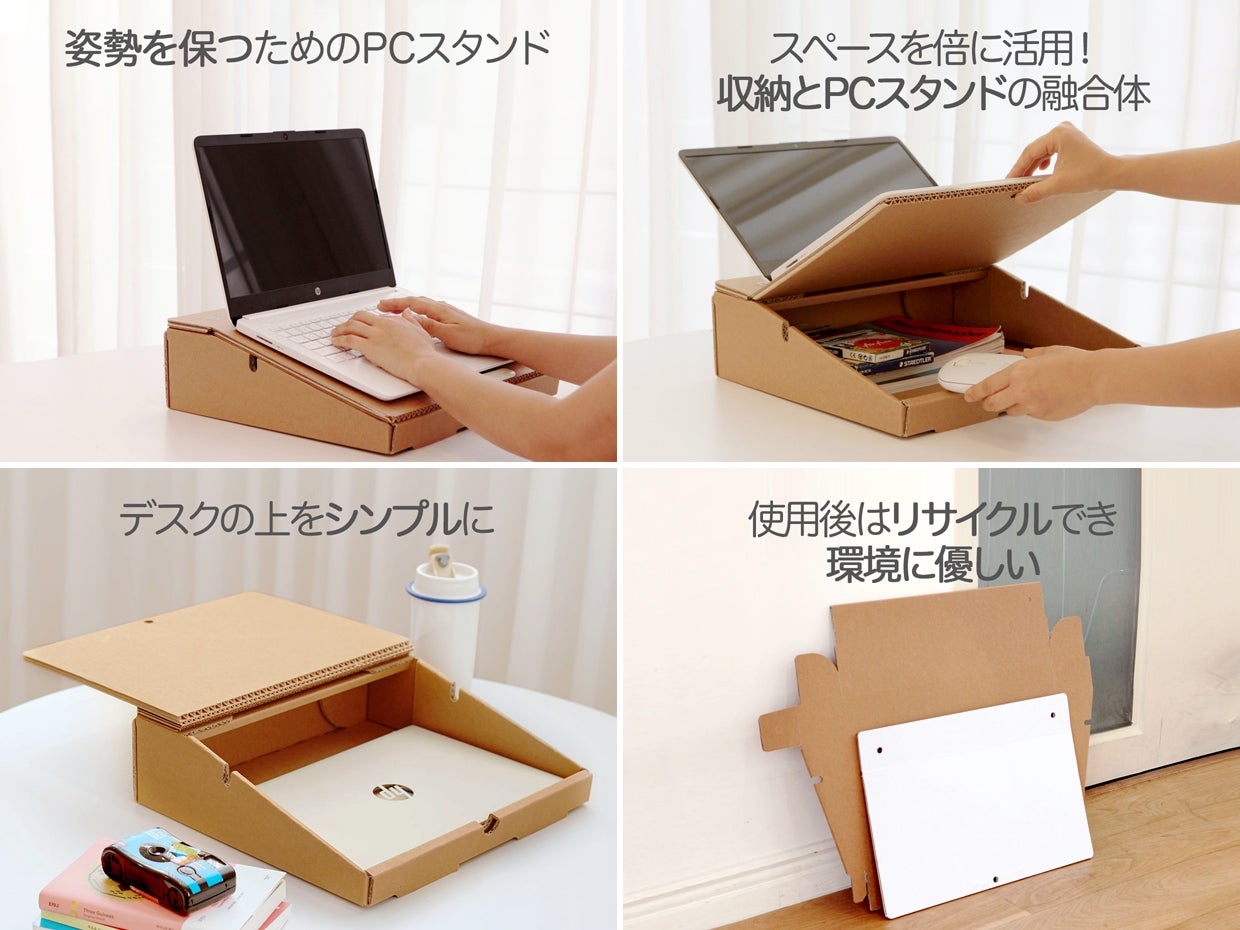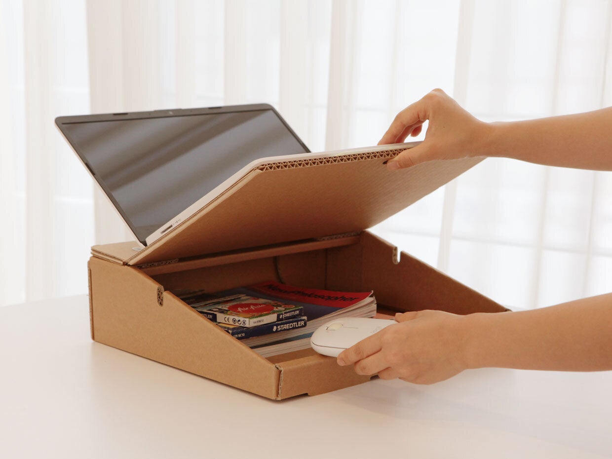 狭い机を有効活用できるリサイクル可能な紙で作った「ストレージスタンド」