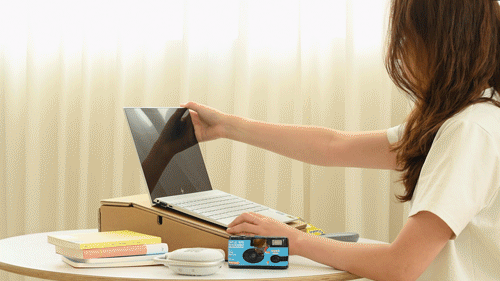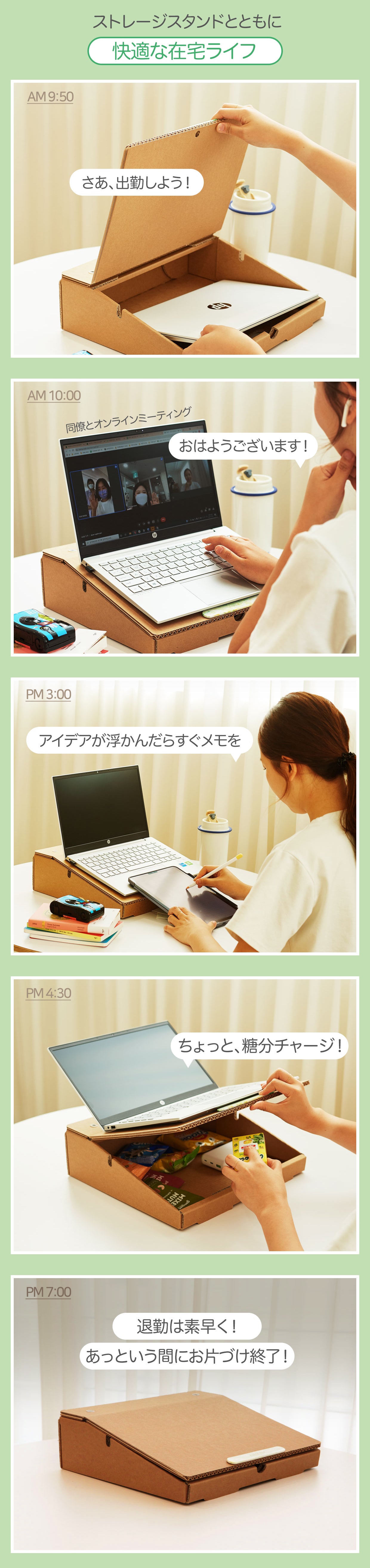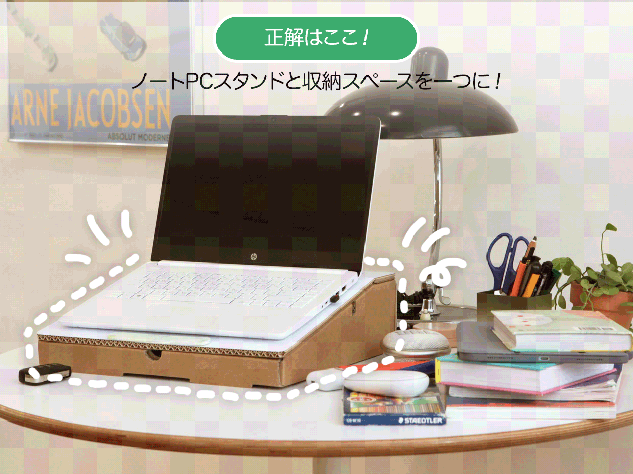 ノートパソコンのスタンドであると同時に収納スペースにもなり、