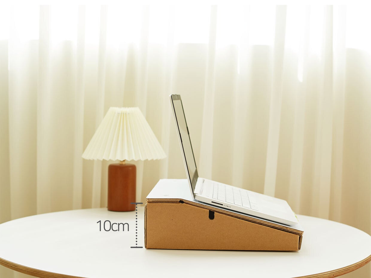 約10cmの高さにノートパソコンを乗せ、使用した時にモニターを眺める視線を上の方に上げてくれます。 現代人特有のストレートネックに悩まされたならスタンドを使用してください。