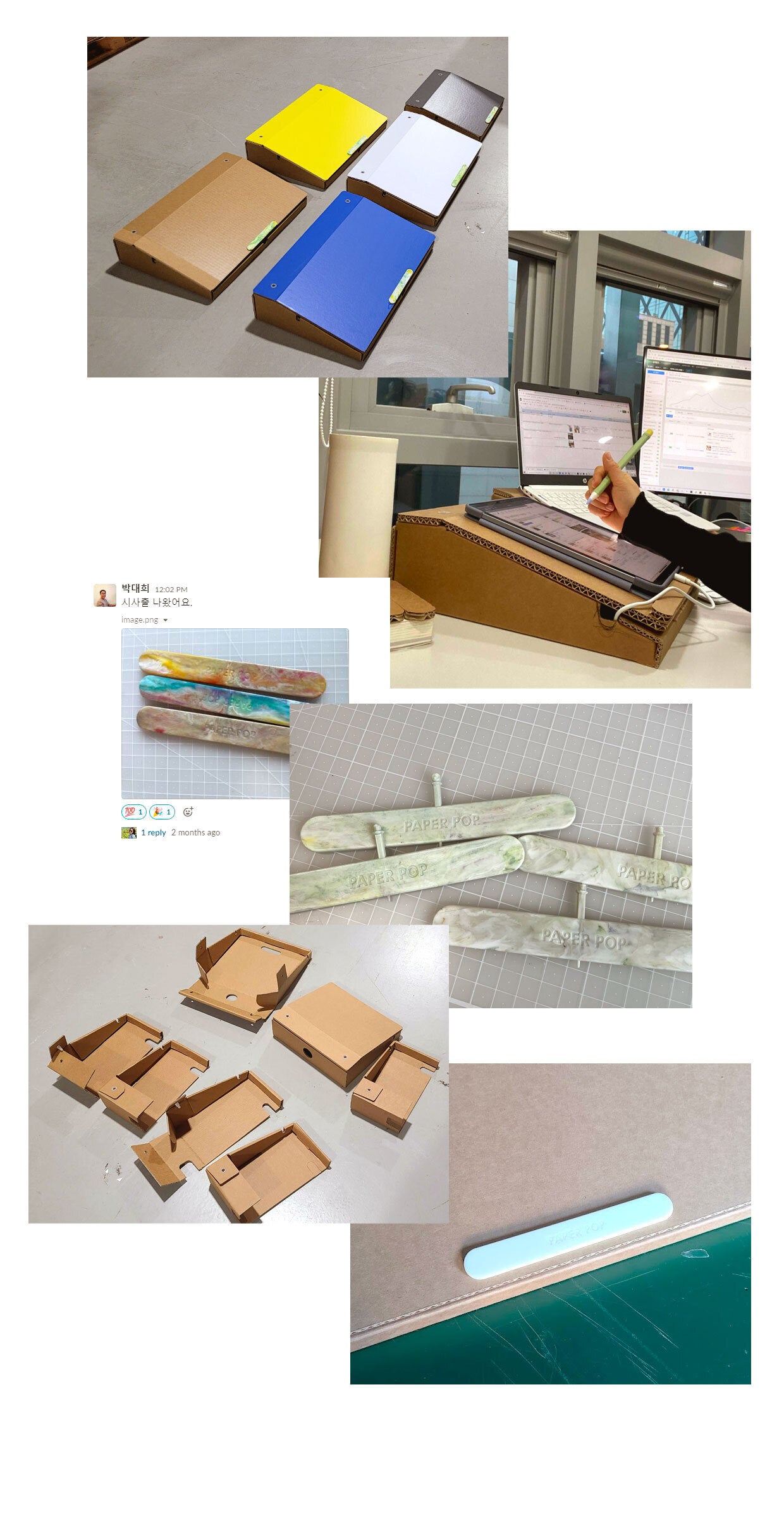 ペーパーポップは、一人暮らしで主に使用するM.D.Fやプラスチックなどの廃棄が難しいものの代案として、50%以上リサイクルされ、有害物質のない環境にやさしい素材の紙から代案を探し、日常で使用する物を紙で開発・製作するソーシャルベンチャー企業です。