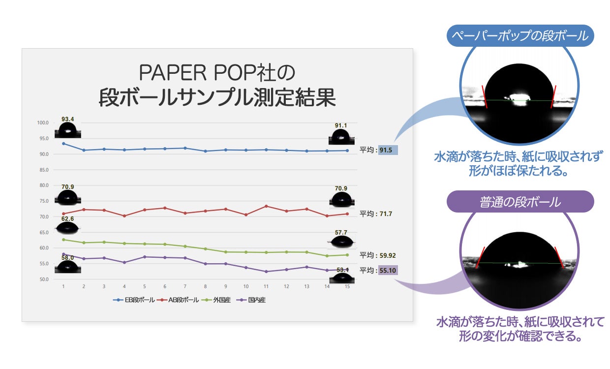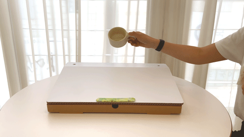 水に触れるとすぐに吸収してしまう一般的なダンボールとは違い、ペーパーポップダンボールは日常で使用できるよう表面に撥水コーティングが施されているので、安心してお使いいただけます。
