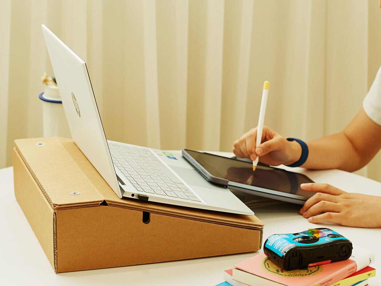 ノートパソコンを立てながら物をしっかり収納する「ストレージスタンド」