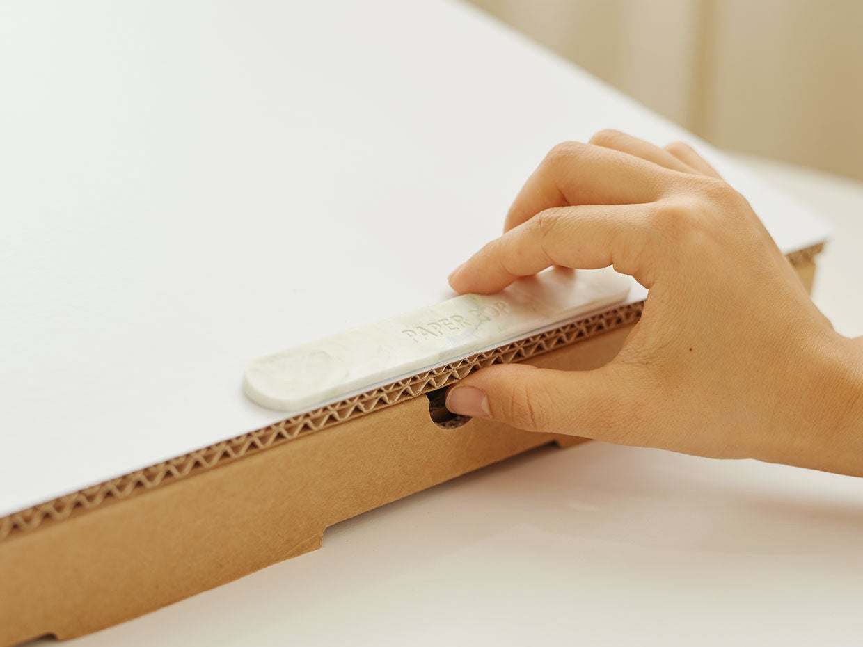 今回は、比較的耐久性の制約が大きくないスタッパー部分を再生プラスチックに交換し、持続可能な素材と紙を融合させ、お互いの長所と短所を補った製品開発を目指していきます。