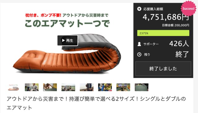 \ 前作のエアマットはクラウドファンディングにて4,751,686円を達成 /