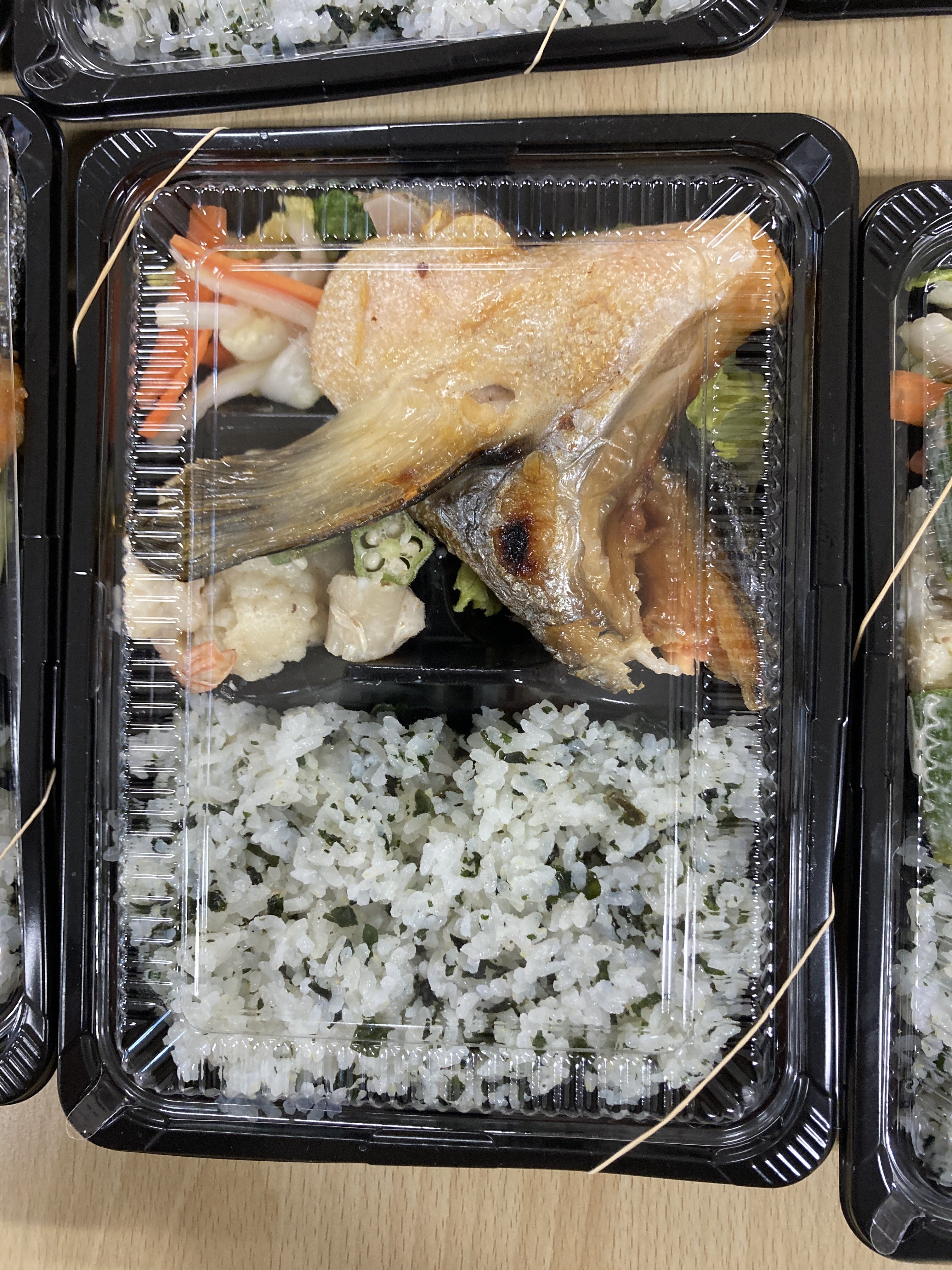本日10月15日に子ども食堂を開催いたしました。緊急事態宣言も解除されたので、通常通りに開催したかったのですが、会場である西町会館より今月は会食を控えてほしいと要望を受け、お弁当での開催です。先日の新聞記事をみて、冷凍水産物卸売業者様より食材の支援をいただき、今回はキングサーモンのカマの塩焼きになりましたお弁当箱にドーン!!とでっかいカマ部分お弁当が映え、いつも以上に豪華となりました食材の支援ありがとうございます
