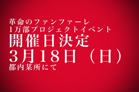 ファンファーレ一万部プロジェクトのイベントの開催日が3/18(日)@都内某所(場所は最終調整中)で決定しました!
