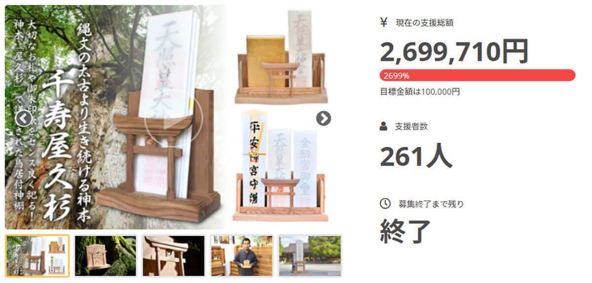 CAMPFIREにて世界遺産の宝『神木 屋久杉』モダン神棚プロジェクト公開!