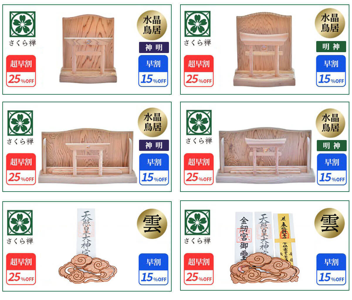 Q8:雲型を横並びに設けた時、御札の飾る順番などはございますか!?               Q8 :上記、鳥居型の「お札の祀り方」画像で説明したのと同じようになります。