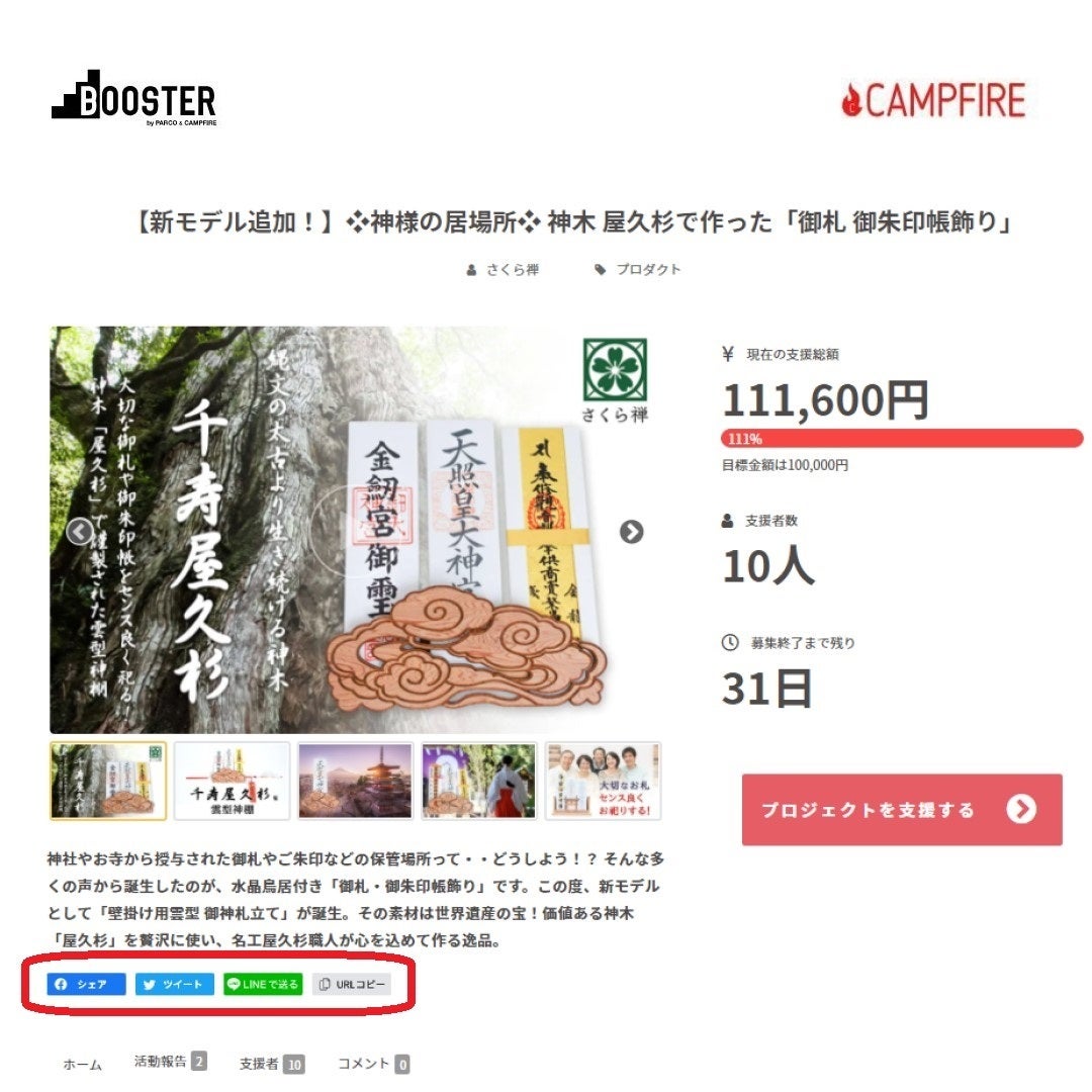 ★プロジェクトページ下の【 fシェア】【ツイート】【LINEで送る】のボタンからのご紹介。