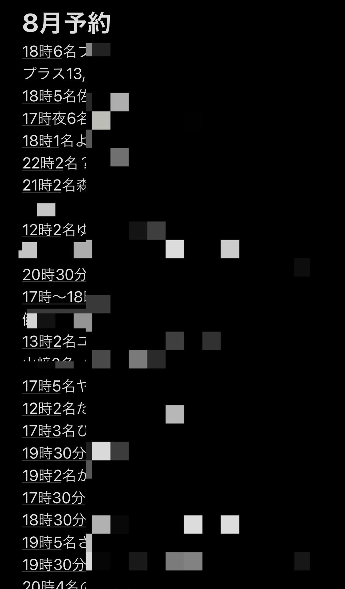 8月の予約の一部(約30組キャンセル)業態変更や新商品開発も考えましたが資金も足りず