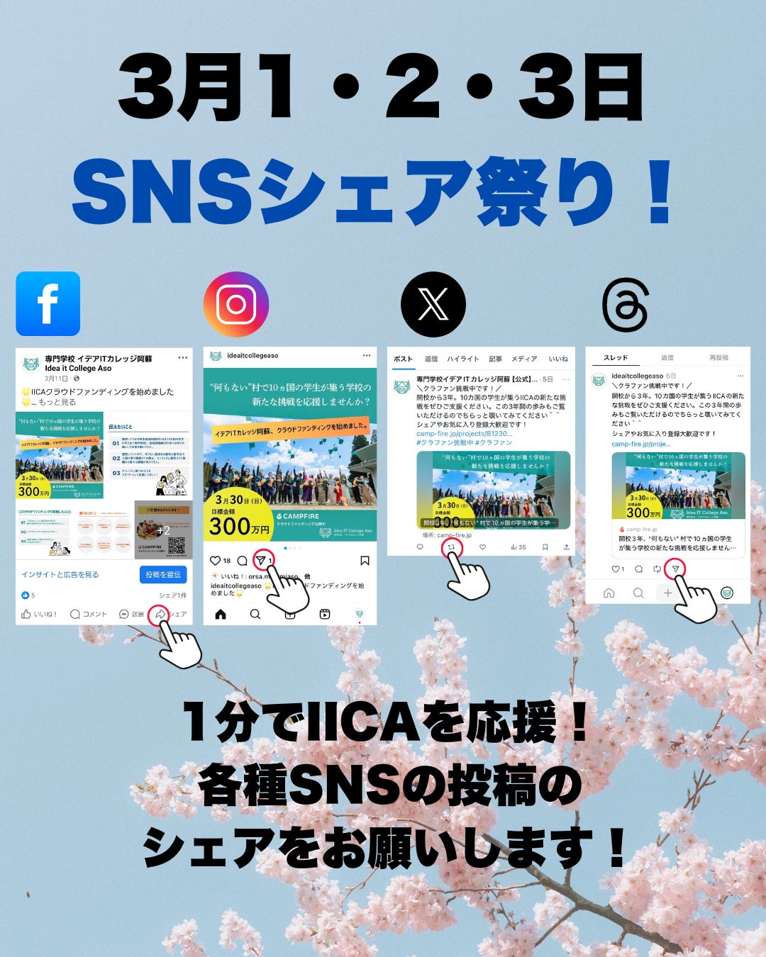 ここからの後半戦で、もっと多くの方に私たちの取り組みやチャレンジを知っていただきたい!と思い、みなさんと一緒に”一斉にクラファンについての投稿をSNSで拡散する『シェア祭り』”を開催したいと思います。
