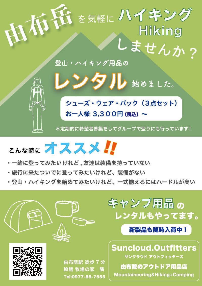 さらに、アウトドアショップでは、登山用品・キャンプ用品のレンタルも行っていますので、旅行に来られた際も手ぶらでアクティビティを楽しんでいただけます!