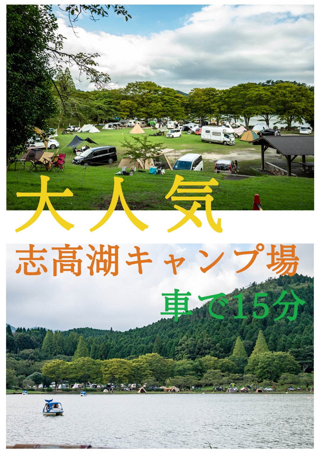 大人気の志高湖キャンプ場まで車で15分!!
