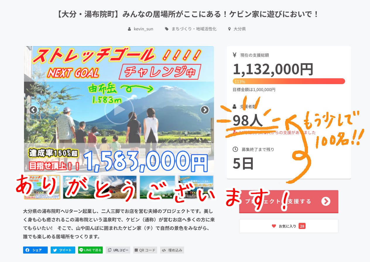 残すところ5日で、あともう少しで支援者様100名へ到達!