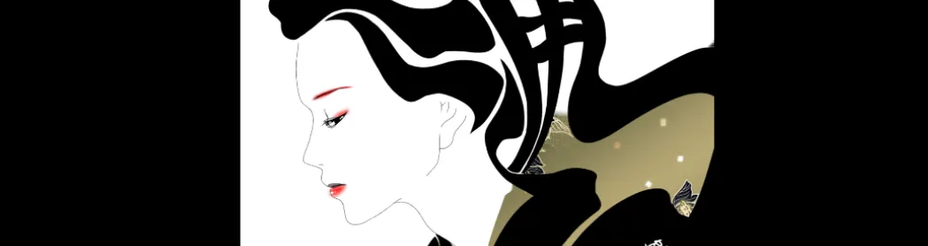 髪の結い上げ、着物の衿や色打掛のイメージを崩さず、文字もしっかり読めるように線を整えていきます。読める範囲内で、しっかりとデフォルメして、より花魁さんの風貌に近づけます。