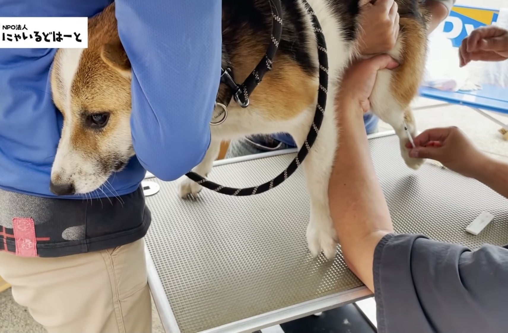 フィラリア検査を頑張るわんちゃん