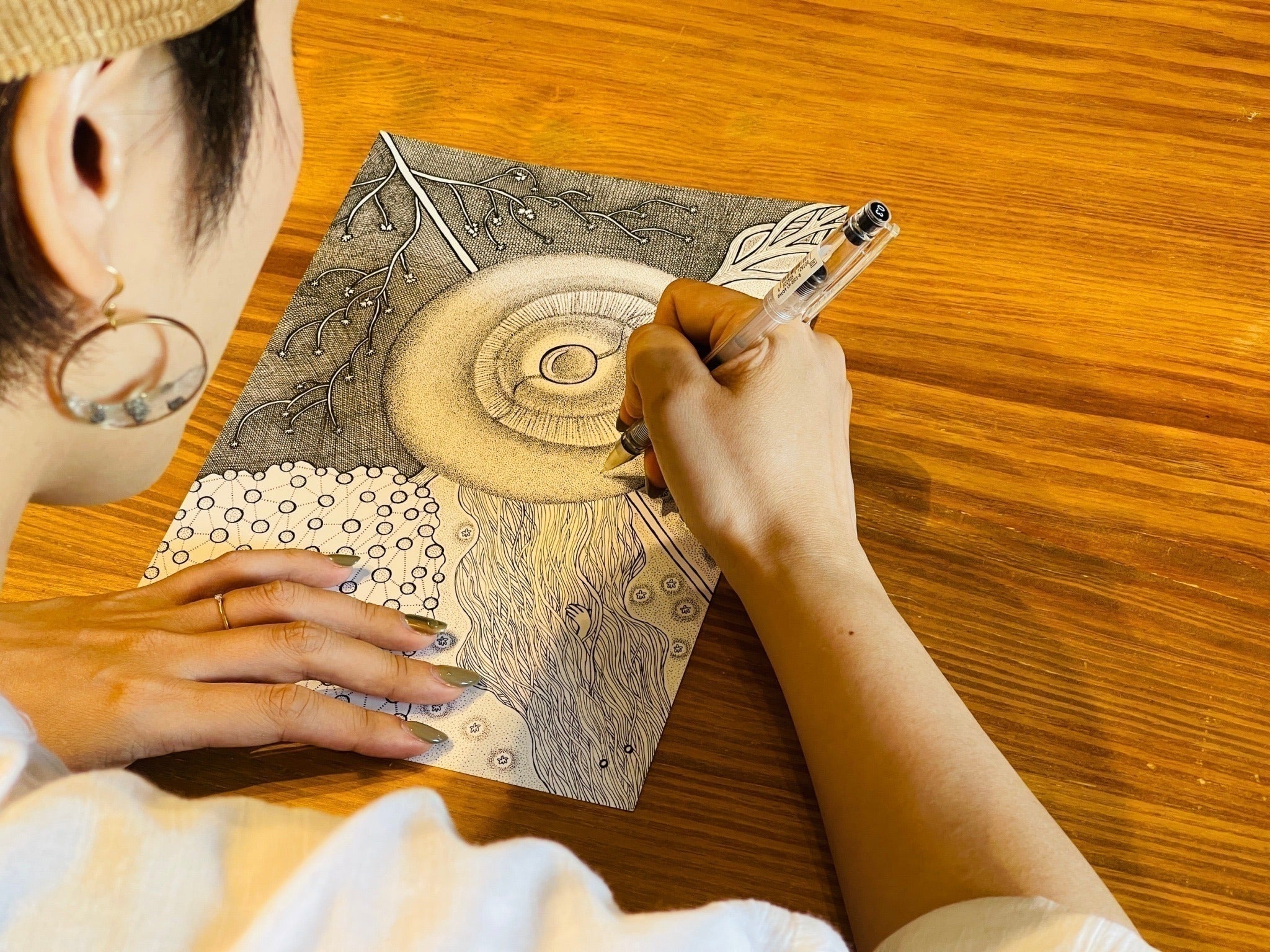 主に0.3ミリのペンで、点描画を描いています。