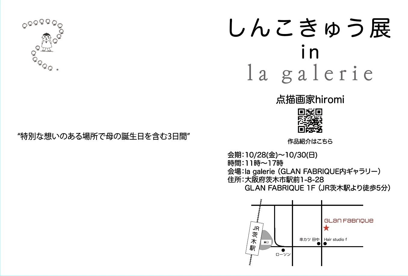 10/28〜10/30の3日間、大阪の茨木駅にある『la galerie』というギャラリーで個展を開催させていただくことが決まっています。