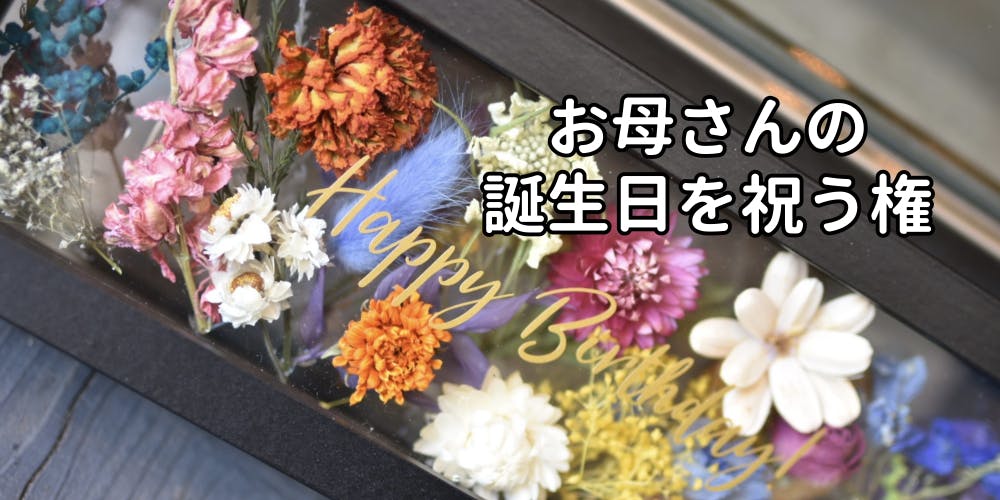 10/30の母の誕生日をみなさんと一緒にお祝いできたら、もっと温かく素敵な空間になると思い【お母さんの誕生日を祝う権】を追加リターンさせていただきしました。