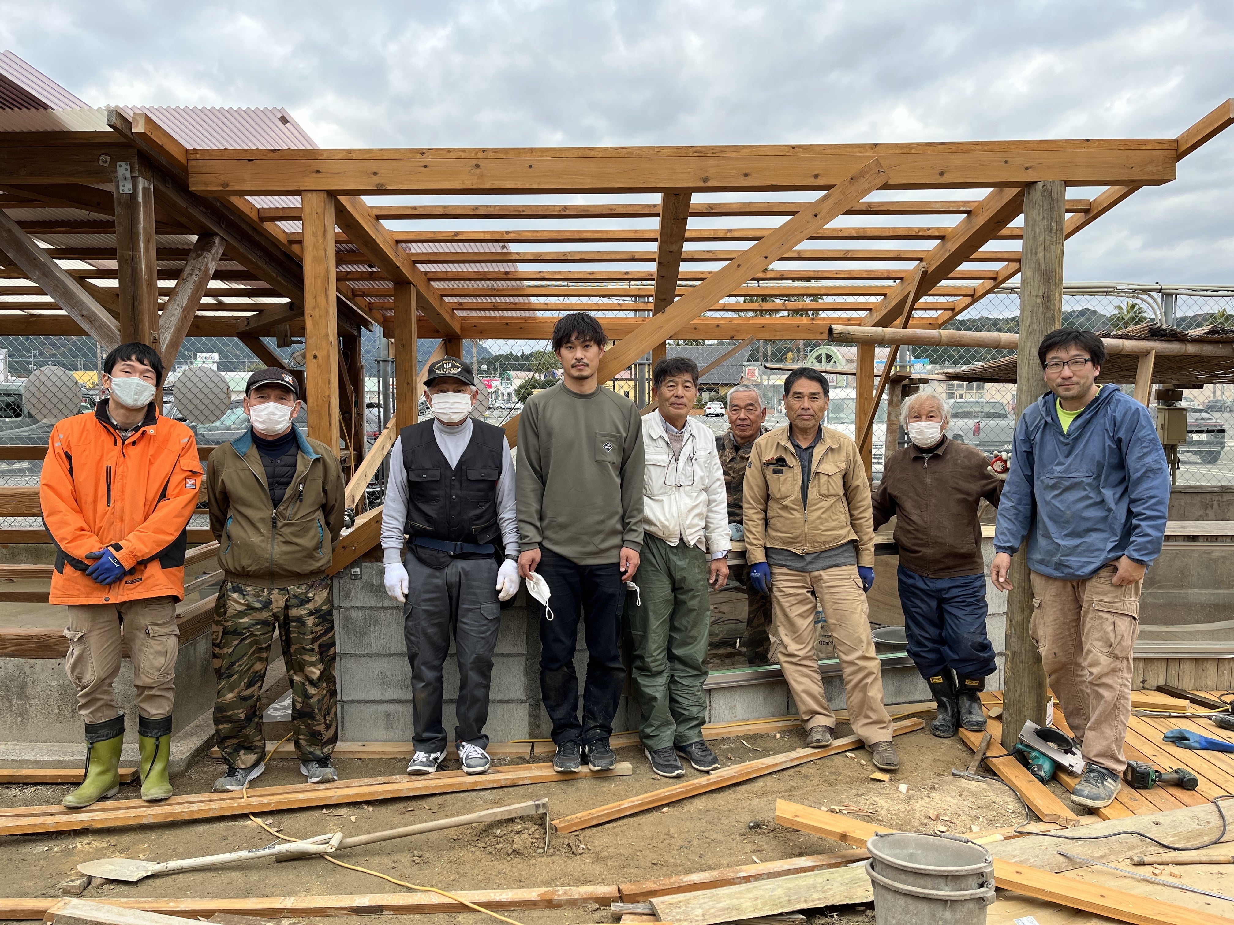 皆様こんばんは。本日は、左官によるビーバー舎壁面やボードウォークなどが完了しました。写真は職人さん達と撮りました。ご支援いただいた皆様に感謝し、その想いをカタチにして下さる職人さんに感謝です。ありがとうございます。明日で工事完了予定です。