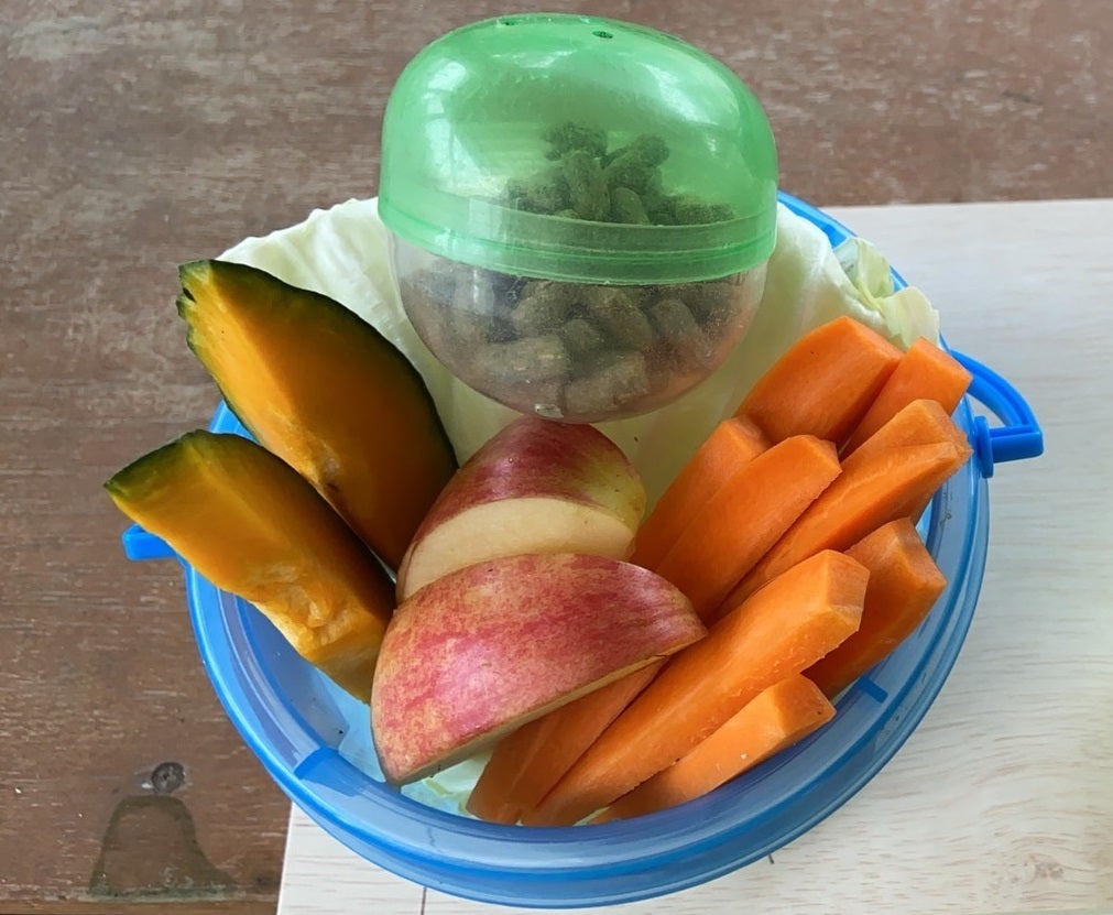 【大盛りエサやりセット】ご好評につき追加します!!トリアスふれあい動物園で動物にエサをたくさんあげられる、ミニバケツに入った大盛りエサセットです。限定のデザインの交換権をお届けします。今後も、新たな返礼品の追加を考えております。皆様の温かいご支援大変感謝しております。プロジェクト達成に向けてがんばってまいります。