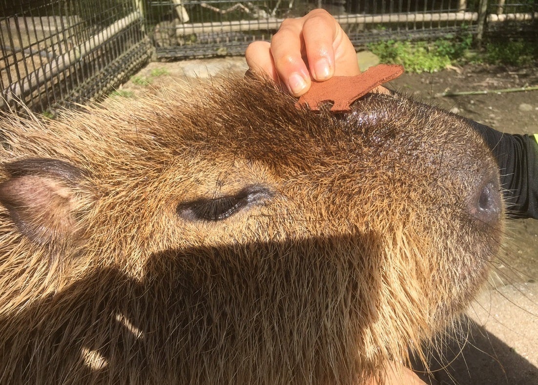 【カピバラキーホルダー モリージョオイル仕上げ】スタッフが1つ1つ手作りで仕上げたカピバラキーホルダーです。厚2mm~3mmの本革を使用し、銀面はカピバラのモリージョから出る油で仕上げました。スタッフとカビバラ(♂)との共同作業で作ったもので、他にはなかなか見ることがない品といえます。目をつぶって匂いをかぐと、微かにカピバラのモリージョの香りがします。連日、皆様からの温かいご支援ありがとうございます。ビーバー家族のために、より良い環境作りに努めてまいります。