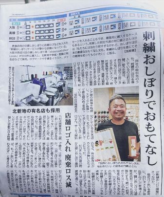 2021.6.30毎日新聞様で「刺繡おしぼりサービス」の活動について掲載いただきました!