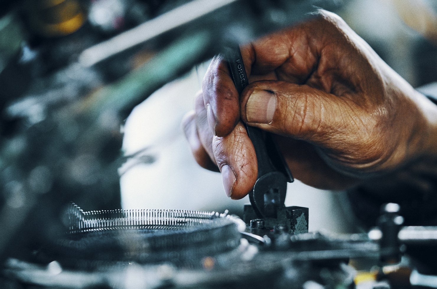 現在創喜で動いている編機の中には、めずらしい国産のものがたくさんあります。とても古いもので、部品も替えがありません。編機を直せる職人さんはなんと日本に1人のみ…。
