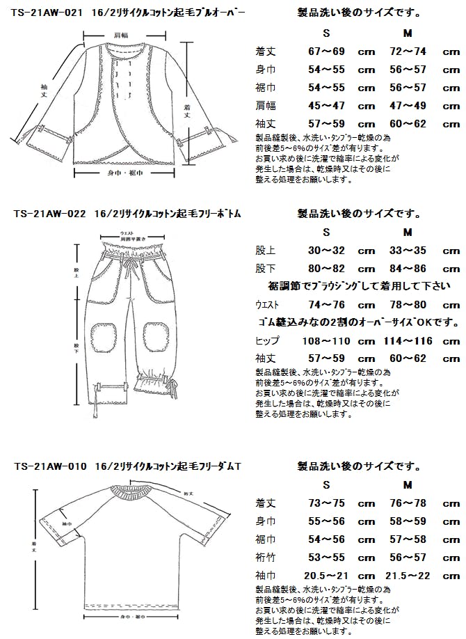 エコクレインコットンを約100年の歴史ある大阪の紡績で作り、ニッティング、起毛加工も同じ大阪で。染め加工も大阪。縫製は三重県名張市で行っていただきました。また縫製後にタンブラー乾燥で仕上げることで、いつまでもサイズ感は変わることなく着用いただけます。