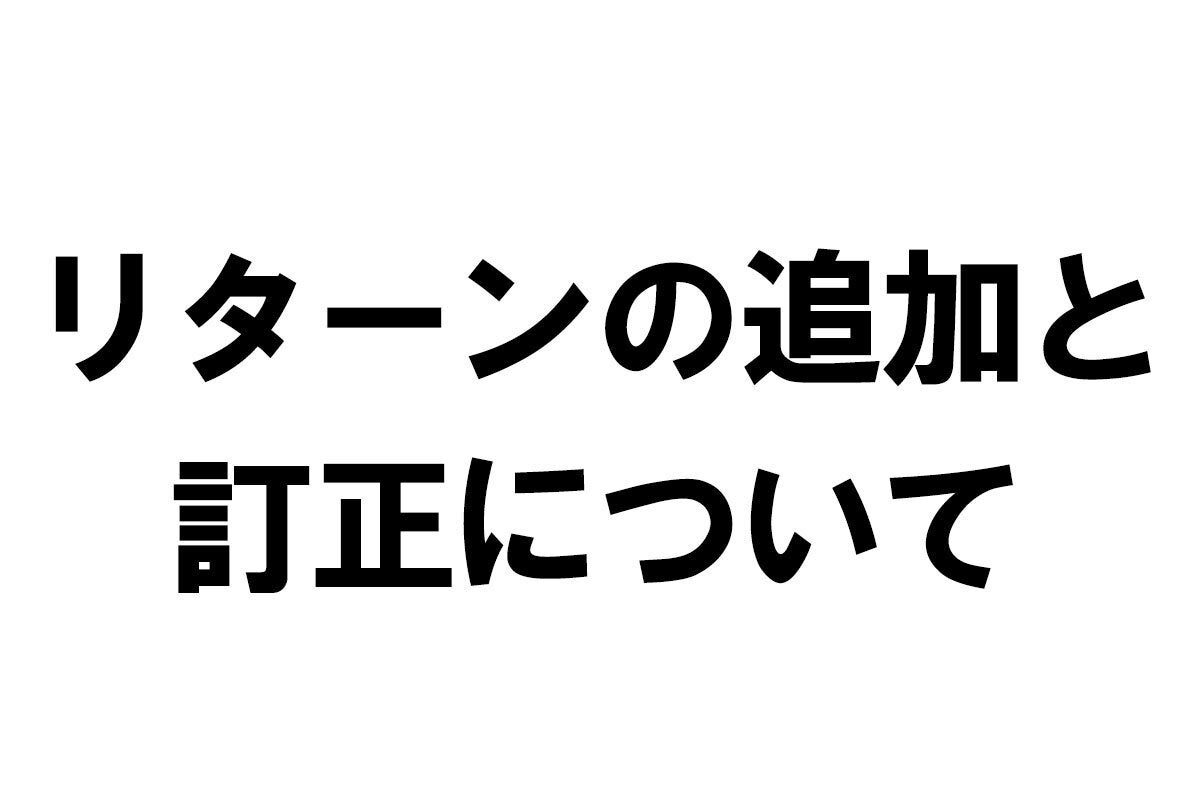 リターンの設定で誤りがございましたので活動報告にて説明をさせて頂きます。