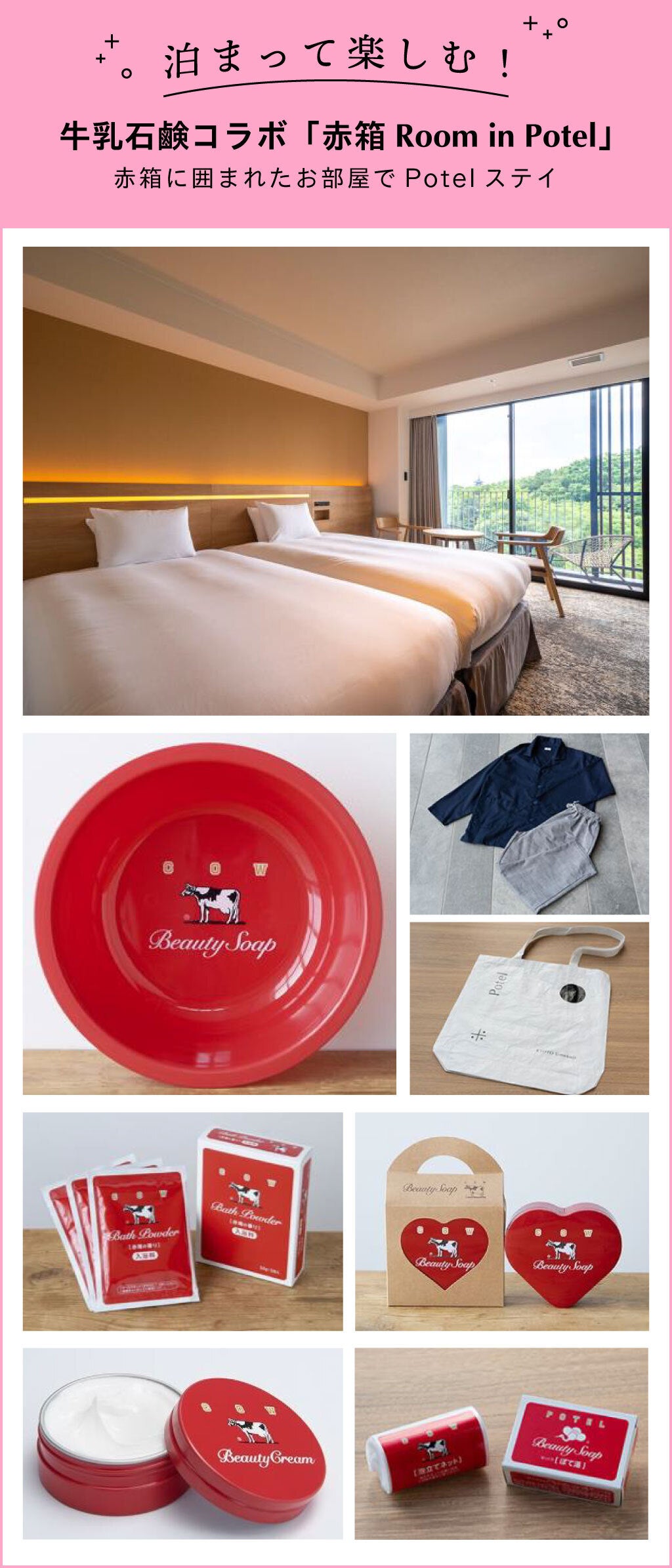 牛乳石鹼コラボ「赤箱Room in Potel」赤箱に囲まれたお部屋でPotelスティ