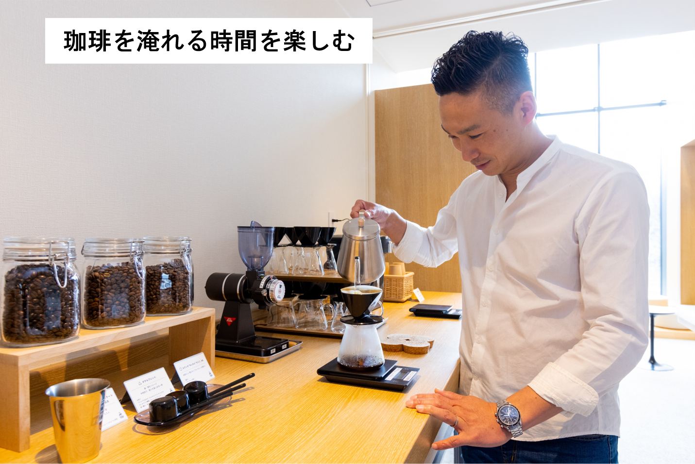 京都珈琲界カリスマ監修の珈琲をご用意。Potelオリジナルブレンドのスペシャリティ豆を使用し、まるでお店で珈琲をハンドドリップで淹れているかのような時間を楽しめる。
