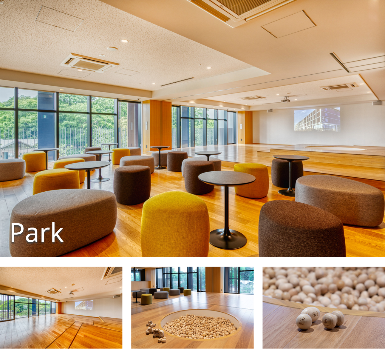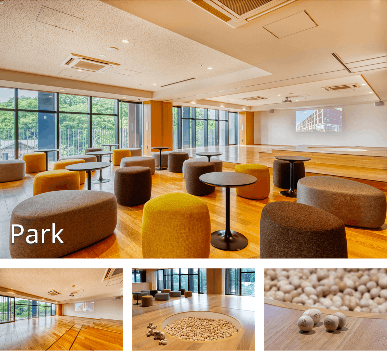 Potelの中にParkを作りました。お子様が日差しを気にせず遊べたり、京都シネマさんと一緒に小さな上映会を開催したり、色々な遊びが楽しめる場所。