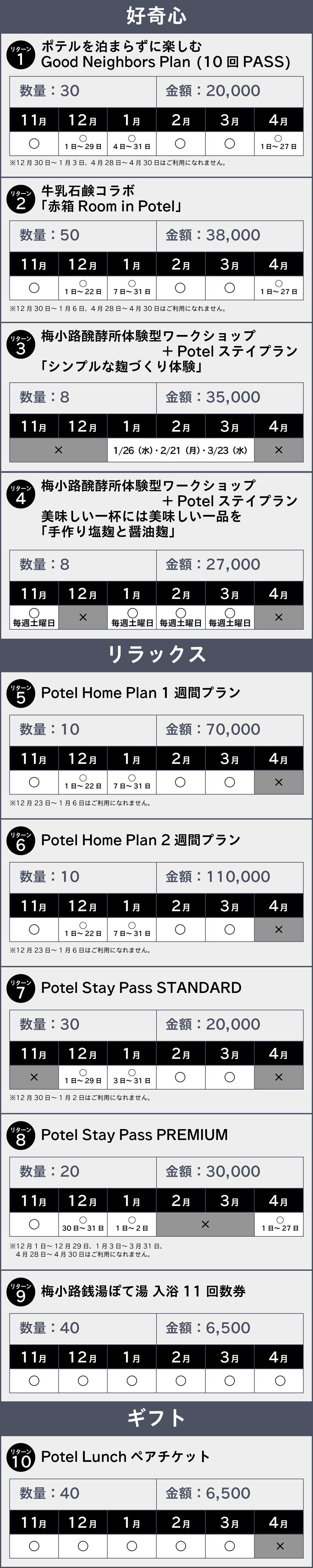リターン7・8▶Potel STAY PASS STANDARD / STAY PASS PREMIUM