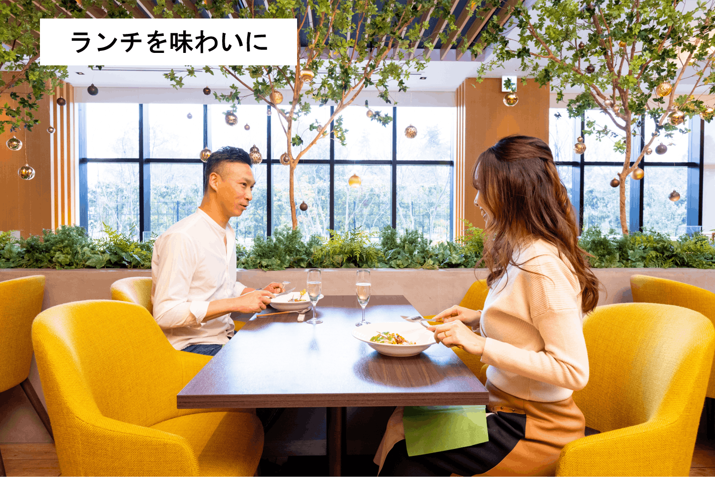 通常お1人様3,300円(税込)のランチと乾杯のドリンク(スパークリングワインorノンアルコールスパークリングワイン)付きのお得なペアチケット。
