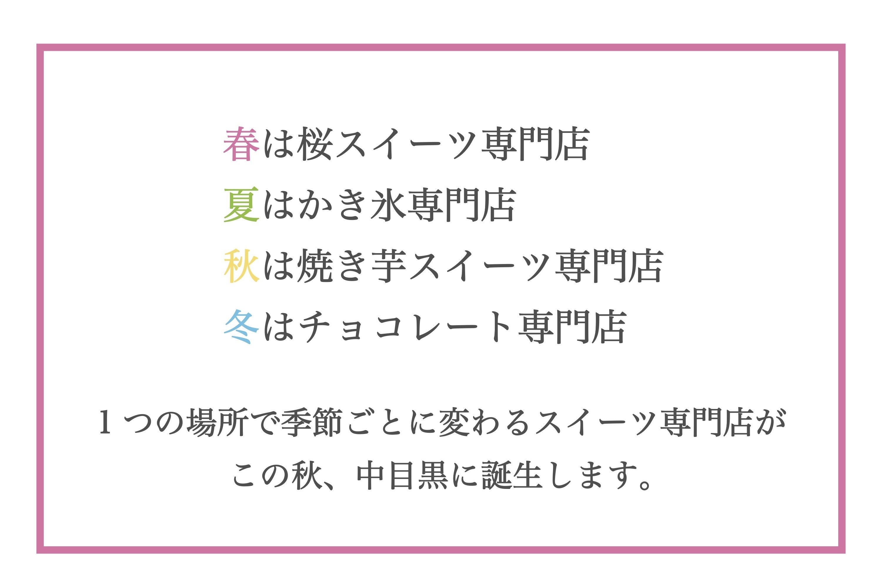 1つのスペースで季節ごとに変わるスイーツ専門店を展開します。