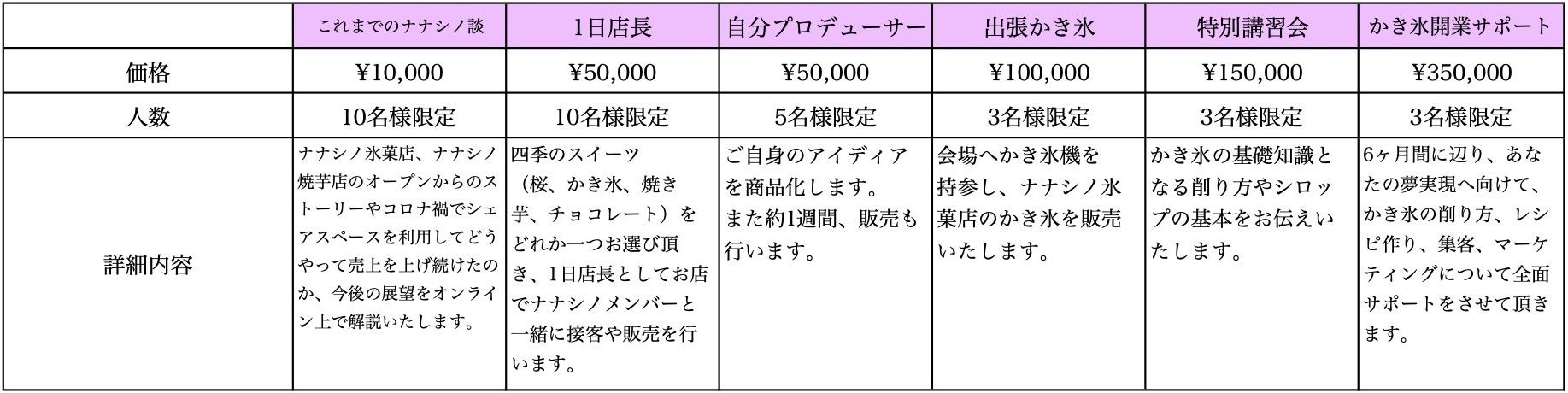 6ヶ月間に渡り、あなたの夢実現へ向けてのかき氷の削り方、レシピ作り、集客、ブランディング、マーケティングについて全面サポートをさせて頂きます。