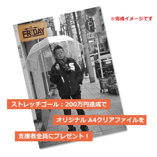 期間内に200万円達成で、ご支援いただいた全ての方にFRIDAYのオリジナルクリアファイルをプレゼントします。