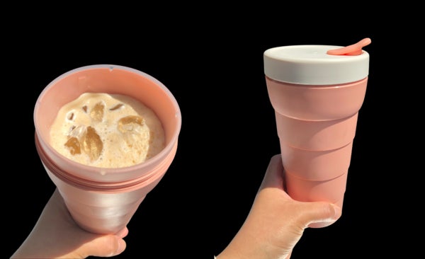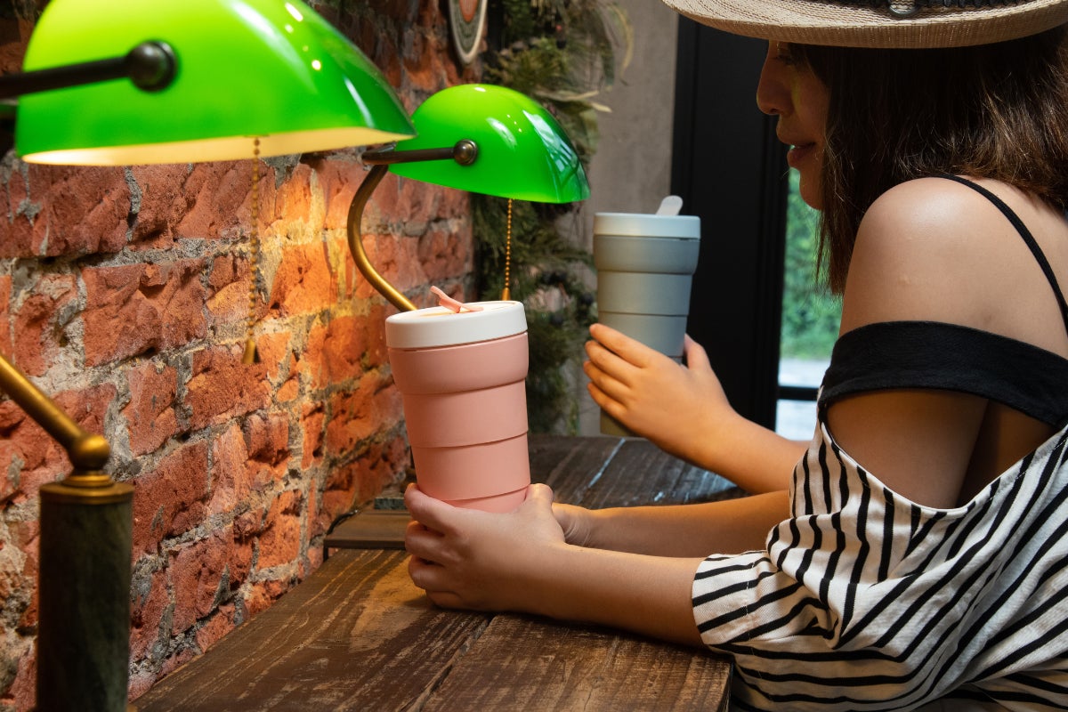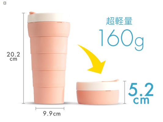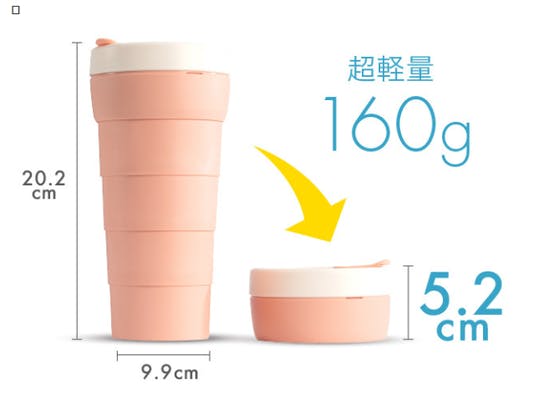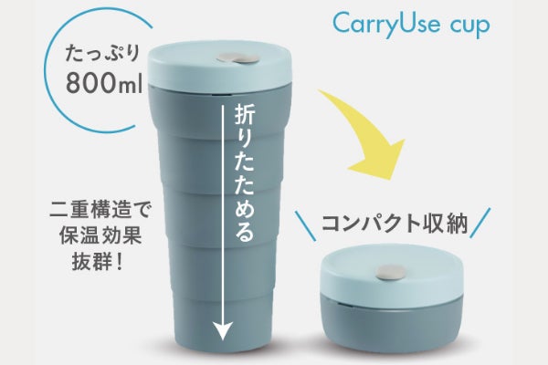 【CarryUse cup】はたっぷり入るのにコンパクトで持ち運びやすい軽量折りたたみタンブラーです。