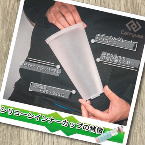 ※CarryUse cupは、アウターカップ本体、シリコンインナーカップ、キャリーストラップがセットになっておりますので、これだけですぐに使えるようになっております。