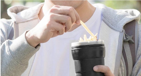 ポテトを食べた後すぐに洗えない時でも、予備の交換カップ(別売・携帯用ポーチ付き)があればきれいなカップですぐにまたドリンクを楽しむことが出来ます。
