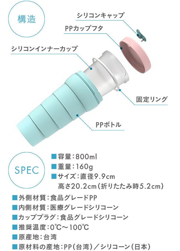 外側が食品グレードPPのカップ本体と、内側が高品質のメディカルグレードシリコーン素材でできているインナーカップの二重構造で、結露しにくく、おいしい温度が続きます。
