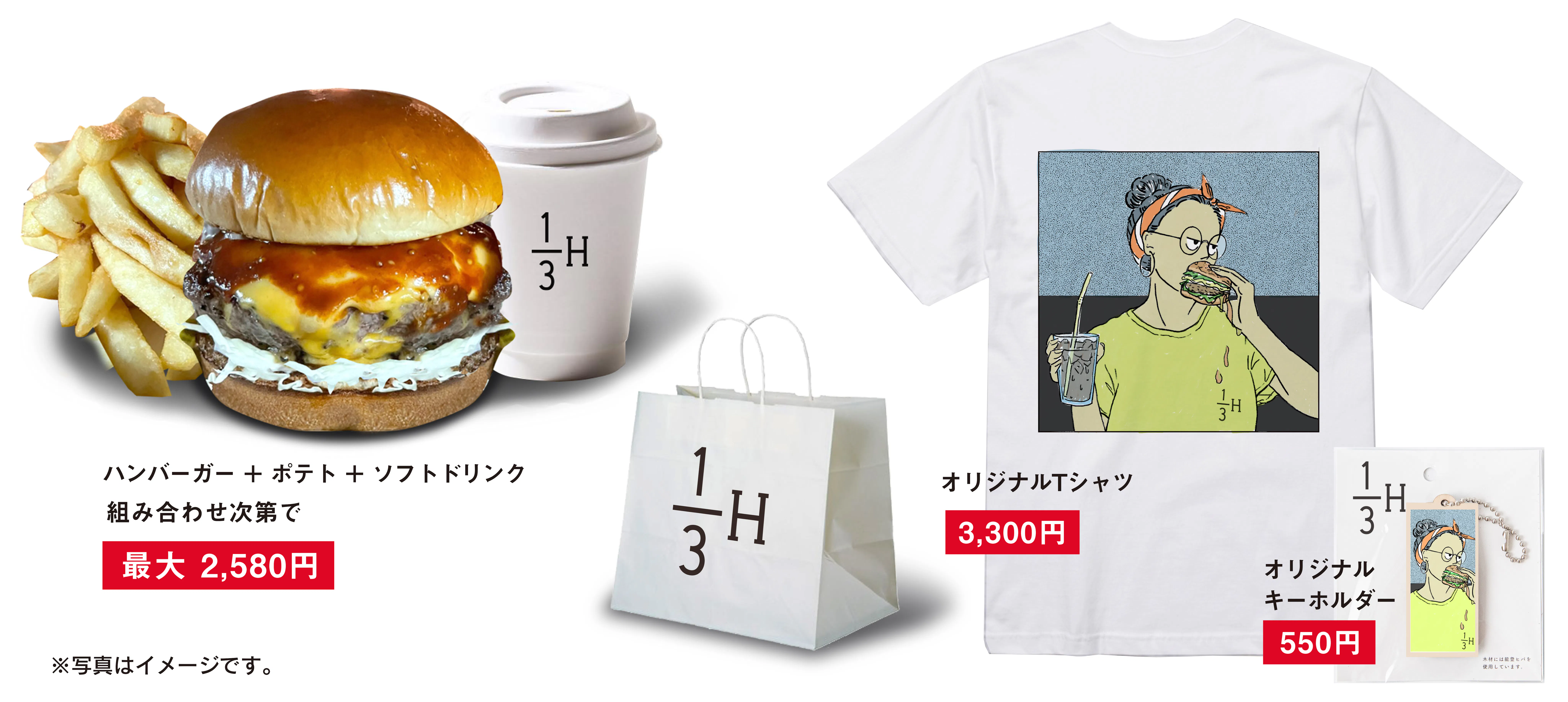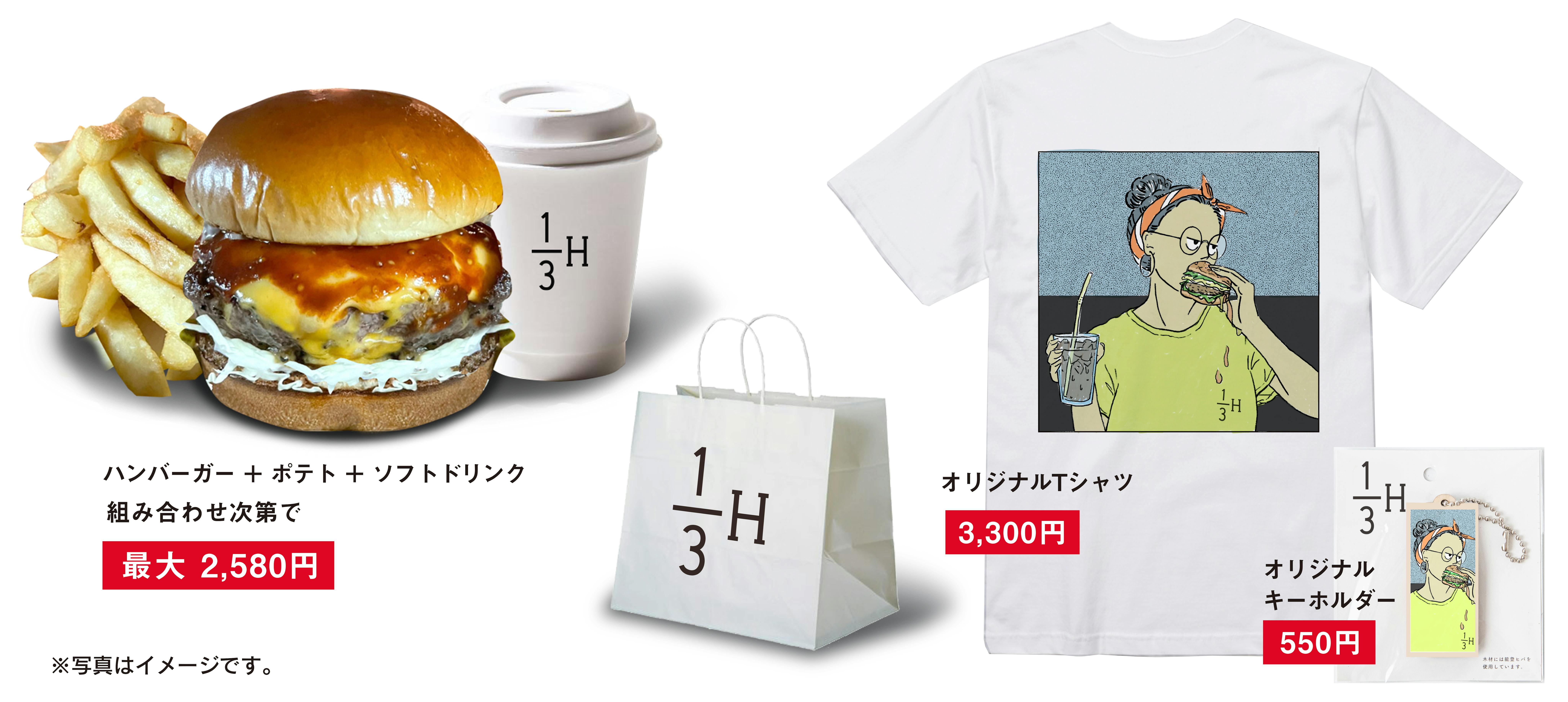そして、グッズとして販売するオリジナルTシャツをお付けします。1/3Hは飲食だけではなくカルチャーをつくりだしていきます。Tシャツは販売価格よりもお得な設定となっています。
