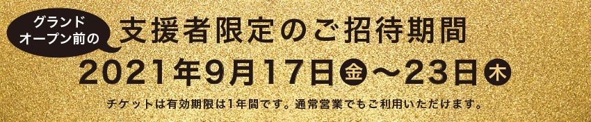 支援者さま特典して、ひと足はやく「1/3 HAMBURGER FACTORY」を堪能していただけるように2021年9月17日〜23日までを特別ご招待期間とします。この特典をご利用になるには9月13日までにご支援していただいた方が対象になります。グランドオープン後は混雑する可能性がございますので、この特典を推奨いたします。