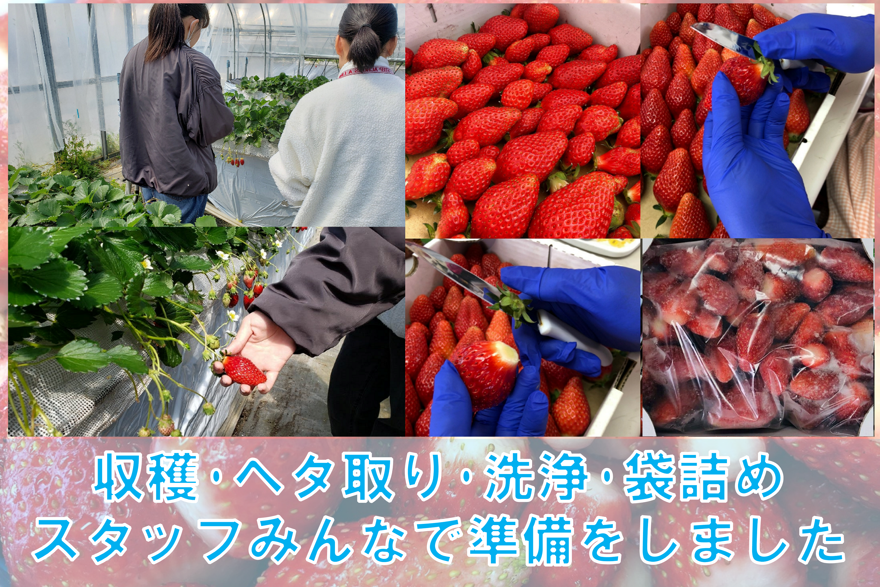 これまで収穫出来たもので冷凍いちごの販売を続けています。