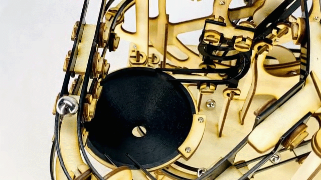 また、完成後は電気モーターの電源を入れるとすぐに稼働し、ビー玉を運ぶ姿はスマートで、インテリアにもピッタリです。