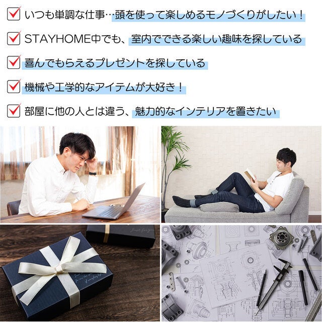モノ造りの好きなお父さんへの贈り物や、子供への楽しい自分で造れる玩具としても人気です。