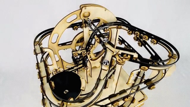 また、完成後は電気モーターの電源を入れるとすぐに稼働し、ビー玉を運ぶ姿はスマートで、インテリアにもピッタリです。
