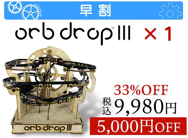 Ord DropIIIの大きな特徴である、直径25.4cmの大きなホイールリフトがクロム鋼のビー玉を滑走コースに運びます。